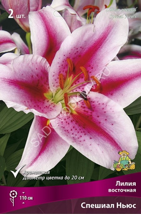 Свит Шугар - высота растения 120 см. Цветок КРУПНЫЙ, нежно-розовый с сиреневым оттенком и густым темно-розовым крапом, диаметр цветка 20-23 см.