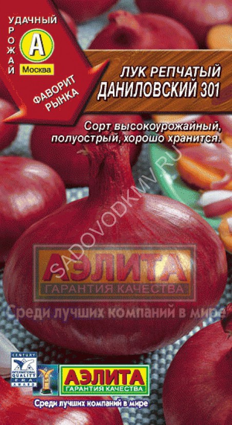 Рекомендуется для выращивания на лук-репку в однолетней культуре из семян, и двулетней — из севка. Среднеспелый сорт. Период от полных всходов до массового полегания листьев 100-110 дней. Двухзачатковый. Луковица округлая или плоскоокруглая, полуострого вкуса. Окраска сухих чешуй золотисто-желтая, сочных - белая. Масса луковицы 100-110 г. Лежкость и транспортабельность отличные. Пригоден для длительного хранения.