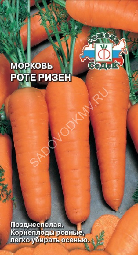 Среднеспелый (103 дня от всходов до технической спелости) продуктивный гибрид. Относится к самым ранним представителям данного сортотипа. Быстро формирует корнеплоды, поэтому может использоваться для посева в июне. Розетка листьев прямостоячая. Корнеплод мощный, длинный, ровный, цилиндрической формы с тупым кончиком (сортотип Берликум), массой 120-250 г. Сердцевина и кора насыщенно-оранжевые. Мякоть вкусная, с высоким содержанием сахара и каротина. Гибрид универсального назначения, используется для раннего сбора пучками, хранения (сохраняет вкус и полезные качества до следующего урожая), прекрасно подходит для домашней кулинарии. Устойчив к цветушности. Урожайность 3,4-6,0 (до 10!) кг/м2.