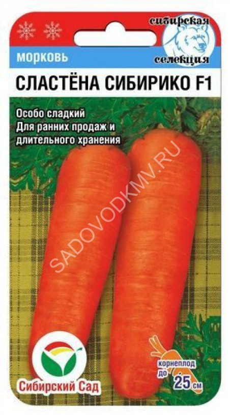 Высокоурожайный гибрид с великолепной лежкостью. Сортотип Шантенэ. Среднеспелый гибрид. Период от всходов до уборки урожая 100-110 дней. Корнеплод средней длины, конический со слегка заостренным кончиком. Масса 120-300 г. Сердцевина темно-оранжевая, кора оранжевая. Сильный листовой аппарат с хорошей устойчивостью к заболеваниям. Рекомендуется для длительного хранения, консервирования и замораживания.