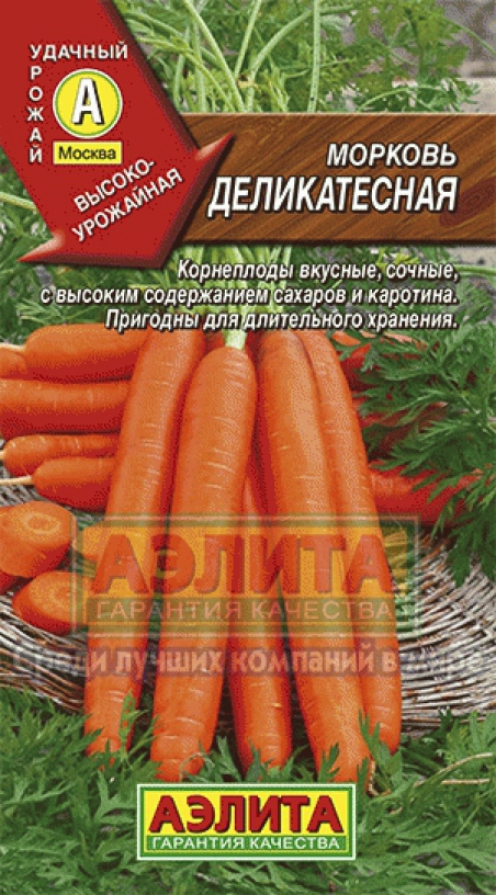 Среднеспелый (от всходов до технической спелости 105-110 дней) сорт. Корнеплоды цилиндрические, оранжево-красные, длиной 18-20 см, массой 120-150 г, с небольшой сердцевиной, с высоким содержанием каротина. Вкусовые качества отличные. Ценность сорта: устойчивость к цветушности, очень высокое качество и выравненность корнеплодов, хорошая лежкость. Подходит для крупнотоварного производства. Рекомендуется для употребления в свежем виде, переработки и замораживания.