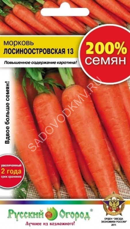 Среднеспелый (100-120 дней от всходов до технической спелости) сорт. Розетка листьев полураскидистая. Корнеплод оранжевого цвета, средней длины до длинного, цилиндрической формы, кончик немного заостренный (сортотип Амстердамская), массой до 130 г. Сладкая сочная мякоть отличных вкусовых качеств. Рекомендуется для использования в свежем виде, консервирования, зимнего хранения. Посев семян в грунт производят в конце апреля-начале мая на глубину 1 см, расстояние между рядками 15 см. Подросшие всходы прореживают, оставляя между растениями по 5-7 см. Урожайность до 10,0кг/м2.