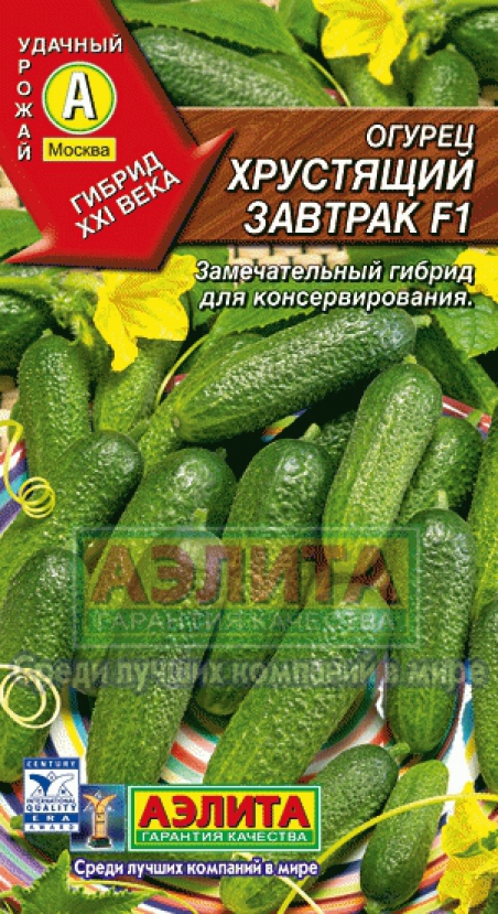 Среднеспелый (50-55 дней) пчелоопыляемый гибрид для открытого грунта (на шпалерах), пленочных теплиц и укрытий. Растение сильнорослое, средневетвистое, лист крупный темно - зеленый. Зеленцы ровные, цилиндрические, тёмно-зелёные с блестящей часто- и крупнобугорчатой поверхностью, длиной 25-35 см, тонкокожие, ароматные и вкусные. Товарная урожайность под плёночными укрытиями составила 12,0-12,5 кг/кв.м. Ценность гибрида: устойчивость к вирусу огуречной мозаики, мучнистой росе и фузариозному увяданию, холодостойкость, теневыносливость. Рекомендуется для употребления в свежем виде, консервирования и засолки нарезанными дольками.