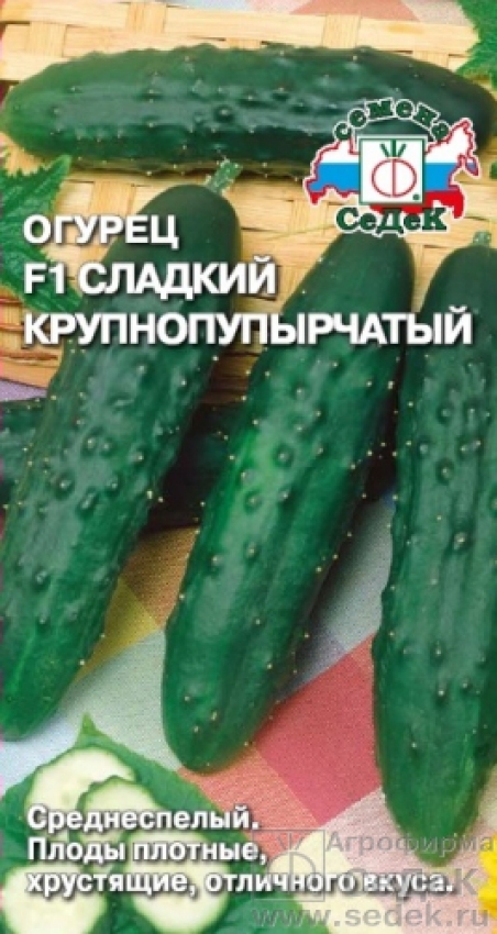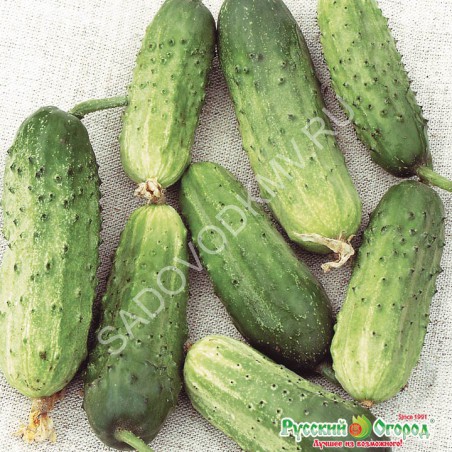 Среднеспелый (50-55 дней) пчелоопыляемый гибрид для открытого грунта (для выращивания на шпалерах), пленочных теплиц и укрытий. Растение сильнорослое, средневетвистое, лист крупный тёмно-зеленый. Зеленцы цилиндрические, тёмно-зелёные с блестящей часто- и крупнобугорчатой поверхностью, слегка ребристые, длиной 25-35 см, тонкокожие, вкусные, с ярко выраженным огуречным ароматом. Товарная урожайность под плёночными укрытиями составила 12,0-13,0 кг/кв.м. Ценность гибрида: устойчивость к вирусу огуречной мозаики, мучнистой росе и неблагоприятным погодным условиям, жаростойкость. Рекомендуется для употребления в свежем виде, консервирования и засолки нарезанными дольками.