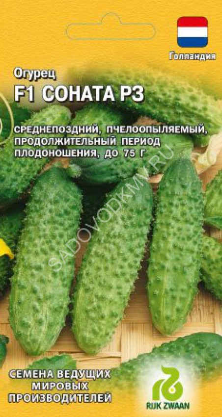 Вкусный, ароматный, идеален для салатов. Партенокарпический среднеспелый гибрид. Для выращивания в пленочных теплицах, под временными укрытиями и в открытом грунте. Период от полных всходов до начала плодоношения 45-50 дней. Растение среднерослое, ветвление среднее, в узле формируются 1-2 завязи. Плоды цилиндрические, гладкие с редкими небольшими бугорками. Длина плода 16-18 см. Вкусовые и товарные качества высокие. Рекомендуется для потребления в свежем виде. Устойчив к вирусу огуречной мозаики, оливковой пятнистости.