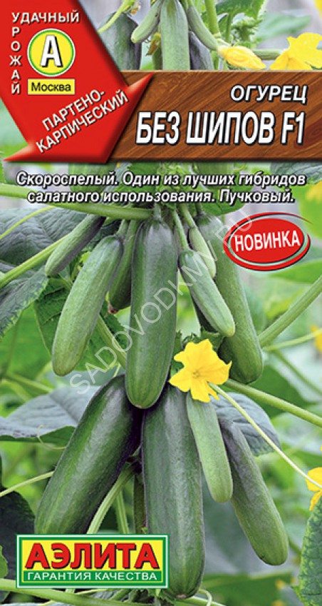 Раннеспелый, очень урожайный партенокарпический гибрид женского типа цветения, в каждой пазухе которого формируется по 4-6(и более) завязей. Хорошо переносит суточные колебания температуры почвы и воздуха. Плоды бугорчатые, цилиндрической формы, длинной 12-14 см, массой 130-150г. Окраска плода темно-зеленая, с небольшими светлыми полосами. Вкусовые качества отличные, без горечи. Использование плодов универсальное. Высоко устойчив к мучнистой росе и корневым гнилям. Рекомендуется боковые побеги прищипывать после первого листа.