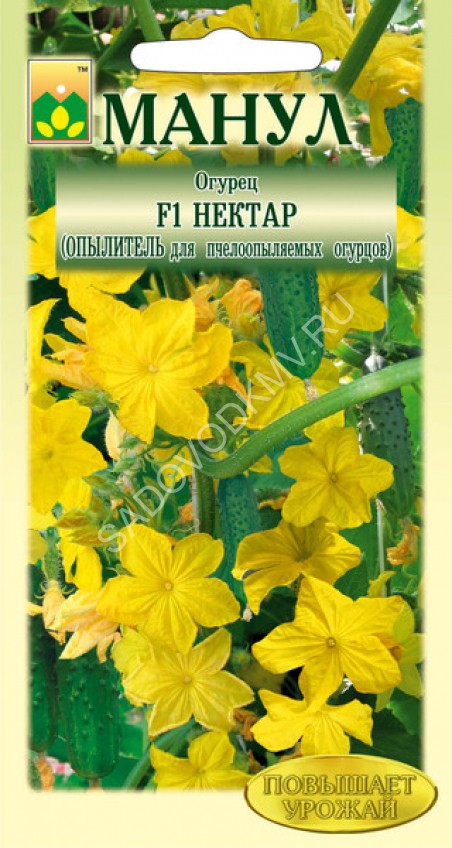 Ультраранний, высокоурожайный партенокарпический гибрид. Первые огурчики снимают через 41-43 дня после всходов. Для пленочных укрытий и открытого грунта. Плодоношение дружное, в каждом узле формируется 5-8 завязей. Зеленцы короткие, массой 100-120 г. Плоды не перерастают и не горчат. Подходит для выращивания пикулей и корнишонов. Урожайность в теплице 20-22 кг/м2.