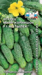 Среднеранний (от всходов до плодоношения 40-43 дня), пчелоопыляемый гибрид для пленочных теплиц и открытого грунта. Растение длинноплетистое, преимущественно женского типа цветения. Зеленец крупнобугорчатый, черношипый, веретеновидный, с размазанными полосами, доходящими до 1/3 длины плода. Зеленцы небольшого размера, массой 82-96 г, длиной 11 см, диаметром 4 см. Благодаря чему их можно консервировать и солить в малообъемной таре. Вкусовые качества свежей и консервированной продукции отличные. Средняя урожайность – 4,5 кг/м.кв. Ценность гибрида: стабильная урожайность, высокий выход товарной продукции, высокие вкусовые и товарные качества корнишонов, комплексная устойчивость к болезням.