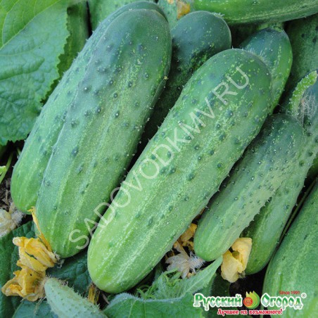 Раннеспелый, высококурожайный, партенокарпический гибрид с ограниченной побегообразовательной способностью, что значительно облегчает формирование растений. От всходов до плодоношенения 40-45 дней. Рекомендуется для выращивания в открытом грунте и под плёночными укрытиями. Обладает повышенной устойчивостью к комплексу заболеваний. Плоды цилиндрической формы, крупнобугорчатые, тёмно-зелёные, без горечи. Длина зеленца 8-9 см. Отличные вкусовые качества как в свежем, так и в консервированом виде. Высокая урожайность (13-14 кг/м2) и товарность, выравненность плодов, позволяет с успехом использовать их для личного потребления и на продажу.