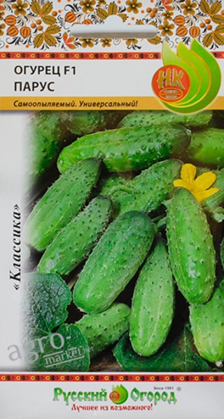 Раннеспелый (40-45 дней)партенокарпический гибрид для открытого грунта и пленочных укрытий. Растение индетерминантное, среднеплетистое. Зеленцы цилиндрические, крупнобугорчатые, темно-зеленые, с белым опушением, длиной 16-18 см, плотные, хрустящие, без горечи. Урожайность 12,5-15,0 кг/м2. Ценность гибрида: устойчивость к мучнистой росе, аскохитозу, выносливость к пониженным температурам, теневыносливость, обильное и продолжительное плодоношение. Назначение универсальное.