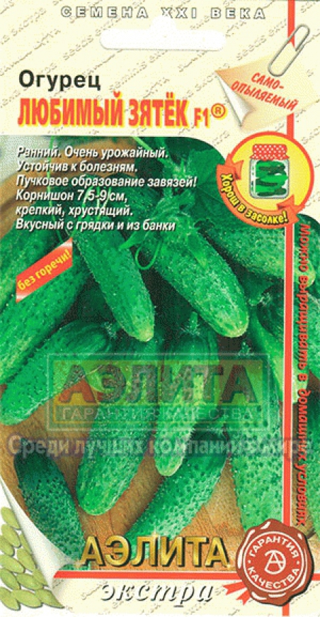 Раннеспелый (37-43 дня от всходов до плодоношения) пчелоопыляемый гибрид для выращивания в открытом грунте и под временными пленочными укрытиями. Растение преимущественно женского типа цветения, среднерослое, с ограниченным ростом боковых побегов, что значительно облегчает уход и уборку урожая. Зеленцы цилиндрические, короткие, зеленые с короткими светлыми полосами, бугорчатые, с белым опушением, вкусные, крепкие, хрустящие, длиной 8-11 см, массой 60-65 г. Рекомендуются для свежих салатов, засолки и маринования. Гибрид устойчив к основным заболеваниям огурцов. Урожайность до 8,5 кг/м2. Посев на рассаду в конце апреля. Высадка рассады в грунт в конце мая – начале июня в фазе 3-4-х настоящих листьев. Посев непосредственно в грунт – в мае – июне. Схема посадки: 30х70 см.