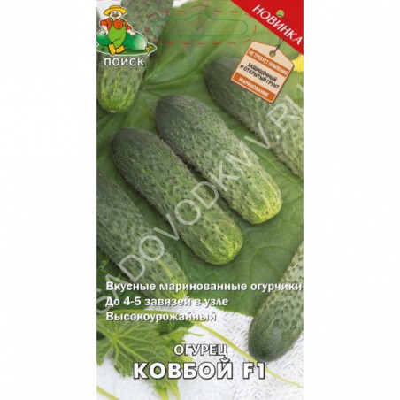 Скороспелый (47-50 деней от всходов до плодоношения) партенокарпический гибрид женского типа цветения. Предназначен для выращивания в пленочных теплицах. Посев на рассаду в конце апреля. Высадка рассады в грунт в конце мая - начале июня. Высадка рассады производится в фазе 3-4-х настоящих листьев. Посев непосредственно в теплицу - в середине мая. Схема посадки 50х50 см. Зеленец длиной 14-16 см, массой 120-150 г, бугорчатый, белошипый, без горечи. В пазухе листа образуется по 1-3 плода. Использование плодов как в свежем, так и консервированном виде. Гибрид устойчив к настоящей мучнистой росе, относительно устойчив к ложной мучнистой росе и корневым гнилям. Урожайность одного растения 6,0-8,0 кг.