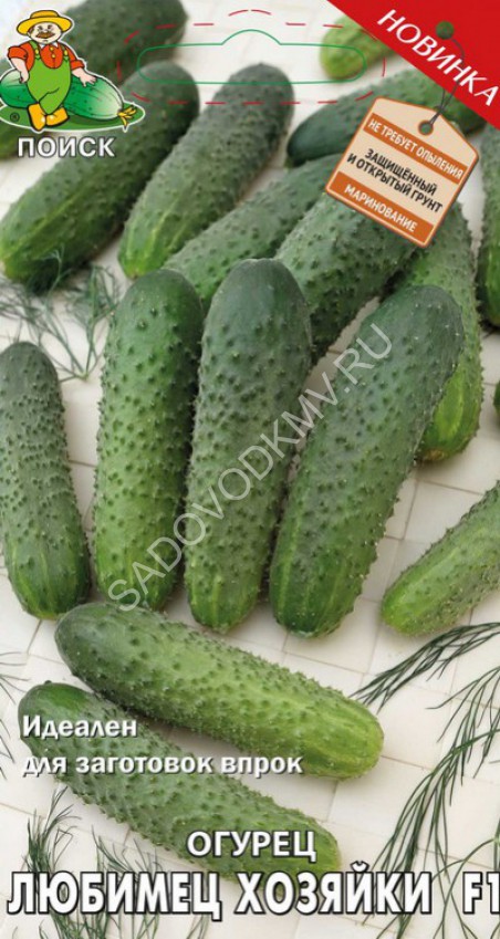 Ранний (от всходов до плодоношения 40-42 дня) партенокарпический (не требует опыления) гибрид зарубежной селекции для выращивания в теплицах и открытом грунте. Растение сильнорослое, в каждом узле формируется по 2-3 завязи. Плоды, темно-зеленые, среднебугорчатые, белошипые, длиной 6-9 см, массой 60-80 г, универсального назначения (для приготовления салатов, засолки и маринования). Гибрид обладает комплексной устойчивостью к болезням огурцов. Урожайность 12-15 кг/м2. Посев на рассаду — в конце апреля. Высадка рассады в грунт — в конце мая – начале июня в фазе 3-4-х настоящих листьев. Посев непосредственно в грунт – в мае – июне. Схема посадки: 30х70 см. Необходим регулярный сбор плодов (2-3 раза в неделю).