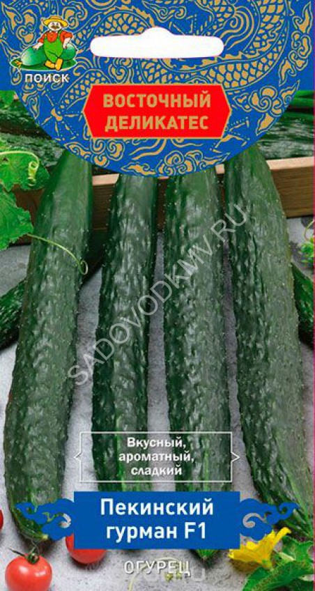 Партенокарпический раннеспелый гибрид для открытого и защищенного грунта. Период от всходов до начала плодоношения 43-45 дней. Растение достаточно сильное, в узле формируется по 2-3 плода. Плоды цилиндрической формы, зеленые, среднебугорчатые, опушение белое, без горечи. Длина 6-9 см. Масса 60-80 г. Обладает комплексной устойчивостью к основным болезням огурца. Универсальное использование.