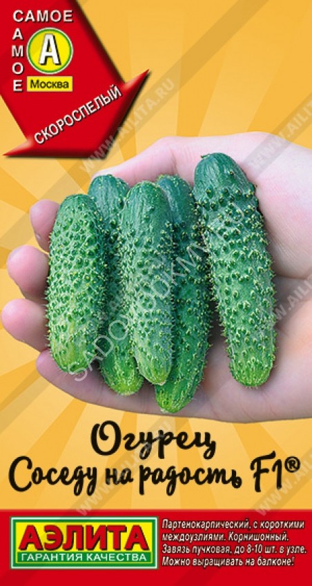 Скороспелый (38-40 дней от всходов до плодоношения) партенокарпический гибрид для пленочных теплиц и открытого грунта. Один из лучших для ранних продаж. Первый на грядке порадует богатым урожаем корнишонов высокого качества. В узле в основном по 2 завязи (до 3-4-х). Плод 12 см, цилиндрический, темно-зеленый со слабыми светлыми полосками, белошипый. Бугорки среднего размера, расположены довольно часто. Гибрид устойчив к настоящей мучнистой росе, оливковой пятнистости и корневым гнилям, толерантен к пероноспорозу. Плоды используют для приготовления свежих салатов, засолки и маринования. Посев на рассаду — в конце апреля. Высадка рассады в грунт — в конце мая – начале июня в фазе 3-4-х настоящих листьев. Посев непосредственно в грунт – в мае – июне. Схема посадки: 30х70 см.