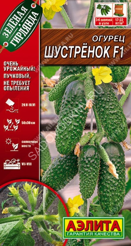 Раннеспелый партенокарпический гибрид огурца с женским типом цветения. Период от всходов до сбора первого урожая 37-43 дня. Растение среднерослое, ветвление слабое, завязь групповая. Зеленцы выровненные, очень симпатичные, слабобугорчатые. Масса зеленца 60-75 г, длина 7-8 см. Рекомендуются для пленочных укрытий и открытого грунта. Урожайность прекрасная: 15-17 кг с 1 кв. м. Плоды без горечи, вкусовые качества свежих и консервированных плодов очень высокие. Мариновать и солить огурчики рекомендуется в фазе пикули и корнишонов. Гибрид устойчив к мучнистой росе и ложной мучнистой росе.