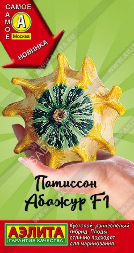 Смесь раннеспелых, высокоурожайных и неприхотливых патиссонов. В неё входят сор та: Зонтик – 50% (плоды белого цвета) и Карапуз® – 50% (плоды желтого цвета). От всходов до первого сбора 45-50 дней. Растения кустовые, компактные, одновременно формируют большое количество завязей. Плоды массой 80-340 г, с тонкой кожицей, нежной и очень плотной мякотью. Вкусовые качества превосходные. В кулинарии используются как кабачки и для маринования. Патиссоны отлично хранятся до конца декабря. Урожайность – 4-5 кг/м 2 .