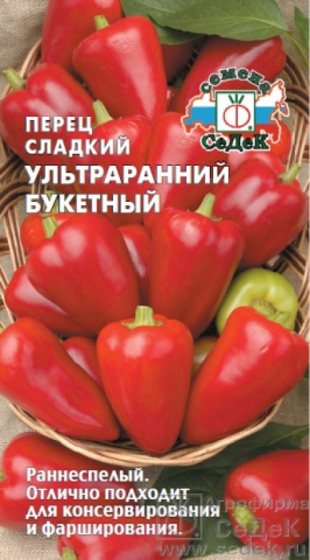 Раннеспелый сорт для пленочных укрытий и открытого грунта. Растение средней высоты, полураскидистое. Плод пониклый, призмовидный, глянцевый, в биологической спелости темно-красный. Масса плода 90-100 г, толщина стенки более 6 мм. Плоды высоких вкусовых достоинств, рекомендуются для свежего потребления и всех видов консервирования. Урожайность 5 кг/м2. Богатейший витаминный комплекс сладкого перца показан при сахарном диабете, депрессии, ухудшении памяти, бессоннице, упадке сил. Чаще включайте в меню сладкий перец – и будьте здоровы.