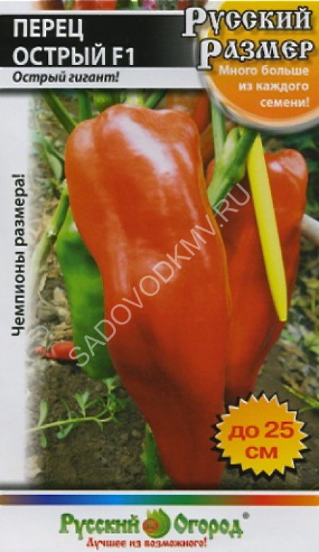 Раннеспелый гибрид типа Ламуйо. От всходов до технической спелости — 95-105 дней. Растения сильнорослые, высотой около 80 см в открытом грунте и до 150 см в защищенном грунте. Плоды крупные, до 15 см в длину и 7-9 см в диаметре. В технической спелости имеют темно-зеленую окраску и массу 150-170 г, в биологической спелости вишневого цвета, массой 200-250 г. Плоды имеют трапециевидную форму, 3-4 ребра и толщину стенок до 8 мм. Мякоть очень сочная, хрустящая, сладкая и ароматная. Подходит для свежего потребления и всех видов переработки. Лежкость и транспортабельность плодов очень хорошие. Гибрид устойчив к вирусу табачной мозаики (TMV 0-2) и вирусу бронзовости листьев (TSWV). Высаживать только пророщенные семена! Семена прорастают за 15-20 дней при оптимальной температуре около 25 градусов С. Плотность посадки — 3 растения/м². Урожайность — до 10,0 кг/м².