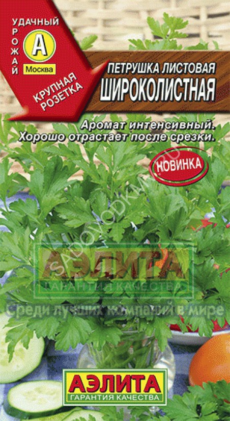 Раннеспелый (60-65 дней от всходов до уборки на зелень) сорт для выращивания в открытом и защищенном грунте. Рекомендуется для использования в свежем и сушеном виде в качестве пряной приправы к различным блюдам: овощным, мясным, рыбным, супам и птице, для консервирования овощей и грибов. Высота розетки 25-35 см, в розетке формируется 20-27 листьев. Листья темно-зеленые, с крупными долями, очень ароматные, хорошо отрастают после срезки. Корни перезимовывают в почве и ранней весной быстро дают молодую зелень. Уборку листьев производят периодически, по мере необходимости. Семена высевают с апреля в течение всего сезона. Практикуются подзимние посевы. Урожайность 1,6-1,8 кг/м2.