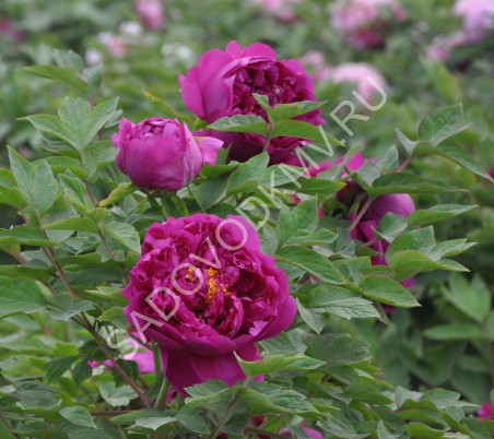Пионы – травянистые многолетники с мощными мясистыми корнеклубнями, реже кустарники. Стебли до 100 см высотой. Цветки крупные одиночные, простые, полумахровые, махровые; белые, розовые, красные, реже желтые. Листья крупные рассеченные.