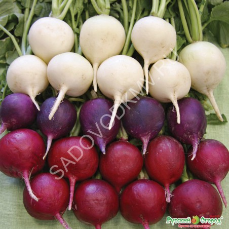 Для тех, кто хочет разнообразить свой стол необычными овощами сове¬туем обратить внимание на редис Аметист. Корнеплоды темно-фиолетовые, округлые, с нежной кожицей, неострой белой мякотью без пустот, готовы к уборке через 21-25 дней после посева. По отзывам дегустаторов сорт имеет более интересный вкус по сравнению с красным редисом, он сочнее и слаще, дольше хранится не теряя влагу. Посев в грунт производится в конце апреля-начале мая, июле на глубину 1 см по схеме 5-7x15 см. К уборке приступают через 18-20 дней. Предпочитает легкие, структурированные, хорошо удобренные почвы.