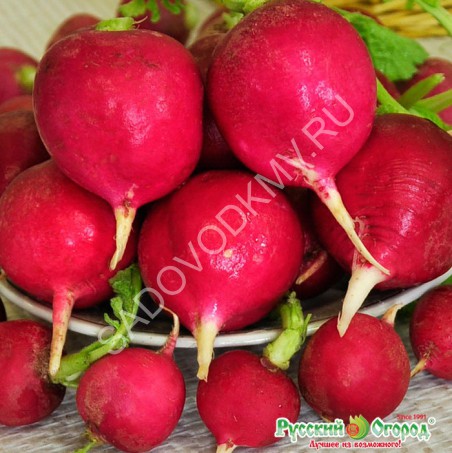Крупноплодный сорт с корнеплодами массой 30-40 г. Среднеспелый, формирует урожай за 25-30 дней от полных всходов. Урожайность высокая – 3-3,4 кг/м2. Корнеплоды округлые, гладкие, выравненные. Мякоть белая, нежная, сочная, хрустящая, долго не дряблеющая. Вкусовые качества отличные. Используется для потребления в свежем виде. Пригоден для кратковременного хранения (до трех недель) в условиях холодильника. Сорт подходит для выращивания в течении всего сезона на почвах различного плодородия. Устойчив к цветушности и растрескиванию корнеплодов.