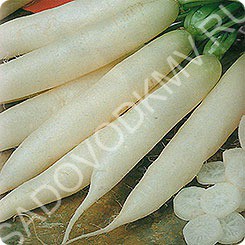 Новый, раннеспелый сорт, с дружным формированием урожая. Период от всходов до технической спелости 20-25 дней. Подходит для выращивания в открытом и защищенном грунте. Корнеплоды удлиненно-цилиндрические, гладкие, массой 15-25 г. Мякоть белая, сочная, хрустящая, приятного вкуса. Используется в свежем виде. Сорт устойчив к цветушности и растрескиванию корнеплодов. Урожайность