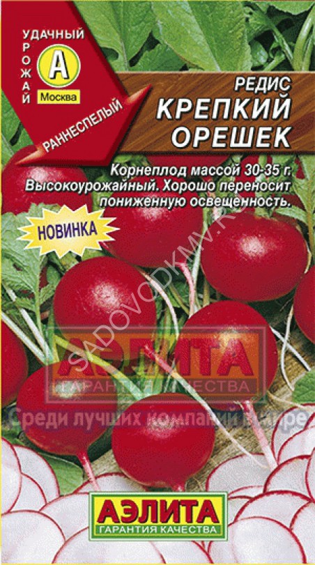 Сорт редиса раннего созревания. От всходов до технической спелости - 23-25 дня. Корнеплоды округлые, карминно-красные, диаметром 2-3 см, массой до 25 г. Мякоть плотная, отличного слабоострого вкуса. Сорт отличается дружной отдачей урожая, пригоден для выращивания в открытом и защищенном грунте. Устойчив к цветушности.