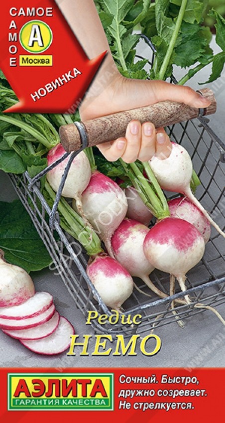 Раннеспелый (от всходов до уборки 20-25 дней) сорт для открытого грунта, теплиц и пленочных укрытий. Корнеплоды округлые, красные с небольшим белым кончиком, массой 25-29 г, с бело-розовой нежной сочной хрустящей мякотью, слабоострого вкуса. Урожайность 1,9-2,9 кг/м2. Ценность сорта: высокая товарность урожая, устойчивость к цветушности. Рекомендуется для употребления в свежем виде, приготовления салатов и окрошки.