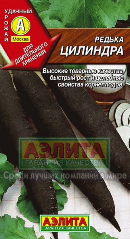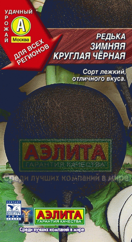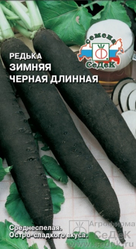 Высокоурожайный, среднеспелый зимний сорт. От всходов до технической спелости 72-95 дней. Рекомендован для использования в свежем виде, приготовления острых мясных и вегетарианских салатов, старинного русского блюда — тюри, и конечно же, для лечение редькой с медом по стародавним рецептам. Корнеплод черный, округлый, диаметром 8-11 см, гладкий. Мякоть белая, сочная, приятного острого вкуса. Масса 200-300 г. Урожайность до 7,0 кг/м2. Хранится в течение всей зимы.
