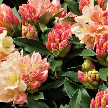 Вечнозелёный куст, растёт быстро, к 15-ти годам высота 1,5 м, диаметр кроны 1,8 м. Цветки 5,5х7 см, открытые, тёмно-красные, с волнистой каймой. Соцветие крупное, состоит из 17-26 цветков. Цветение в конце мая - середине июня. Рекомендуется сажать в полутенистом месте для сохранения окраски цветков во время всего периода цветения. Морозостойкость до –30°.
