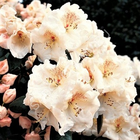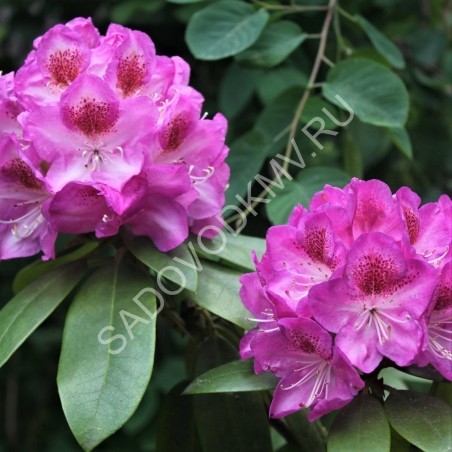 Вечнозелёный куст, в возрасте 10 лет высота около 1,2 м. Новые побеги мягкие, покрытые белыми ворсинками. Листья тёмно-зелёные, с верхней части голые, с нижней опушённые (опушение желтовато-серого цвета). Молодые листья опушённые. Соцветия расположены на концах ветвей, несут 8—12 цветков. Цветки воронкообразные, пурпурно-красные. Цветение в июне. Выдерживает понижения температуры до −34 °С. Рекомендуется посадка в тени или полутени. Рекомендуется посадка в кислую, рыхлую, хорошо дренированную почву, в защищенных от ветра местах, не выносит переувлажнения и пересыхания корнеобитаемой зоны. Нуждается в ежегодном мульчировании и защите от весеннего солнца.