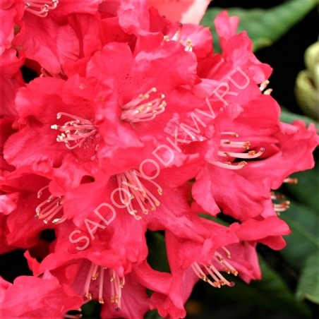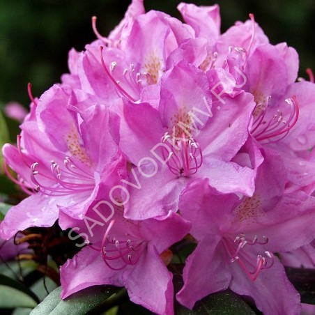 Листья эллиптические 6-15 см длинной, темно-зеленые, блестящие. Цветки в крупных соцветиях, сиренево-пурпурные. Данный вид является одним из самых зимостойких. Предпочитает кислые, влажные, но хорошо дренированные почвы без застойного воды