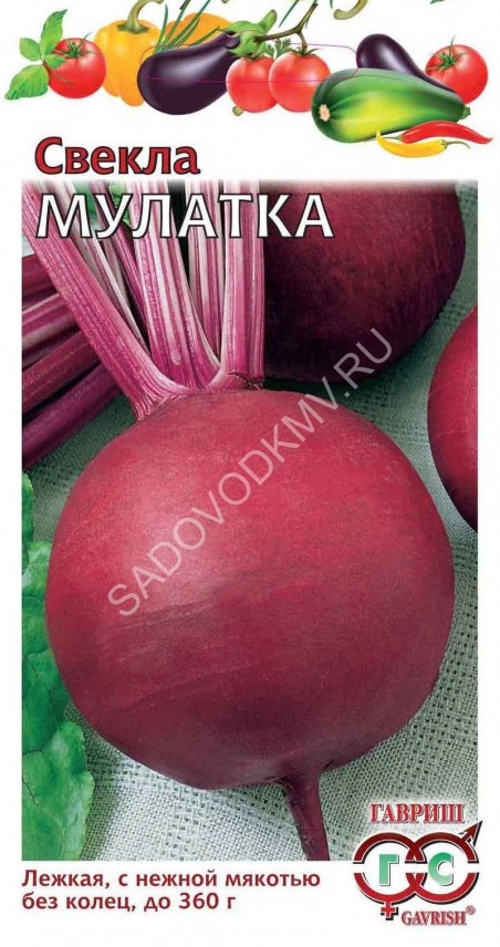 Среднеранний (100-105 дней от всходов до технической спелости) гибрид. Подходит для получения ранней пучковой продукции и выращивания на хранение. Гибрид накапливает максимальное количество сахаров в корнеплодах. Не формирует кольца даже при засухе и резких перепадах температуры. Розетка листьев полупрямостоячая. Корнеплоды округлые, очень гладкие, одинаковые, массой 220-350 г. Мякоть темно-красная, нежная, вкусная, сладкая.