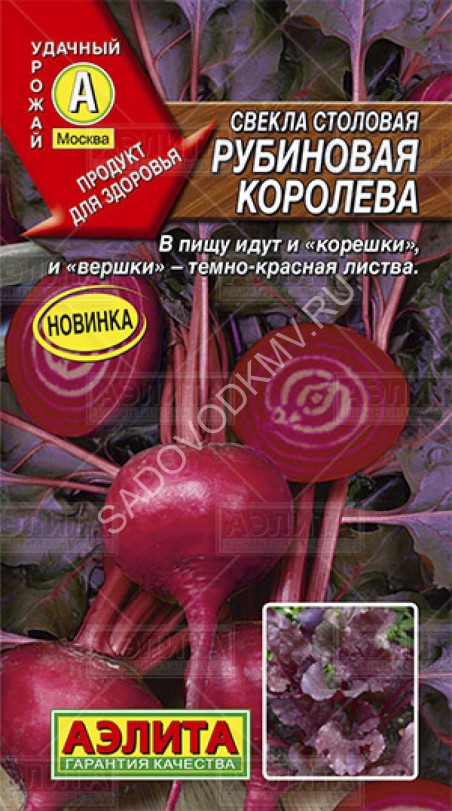 Среднеспелый (120-130 дней) сорт, не требующий прореживания всходов. Корнеплод округлый, темно-вишневой окраски, с гладкой поверхностью, массой 280-350 г. Мякоть темно-бордовая, сочная. Благодаря небольшой погруженности в почву, корнеплоды легко выдергиваются при уборке. Ценность сорта: высокая урожайность, хорошая лежкость. Назначение универсальное.