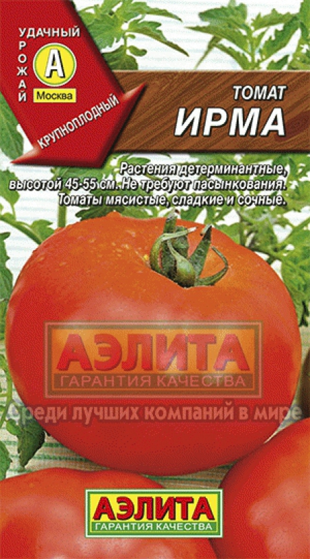 Среднеспелый, высокоурожайный (7,5-8,0 кг/м2) салатный сорт. Период от всходов до начала плодоношения 110-115 дней. Рекомендуется для выращивания в открытом грунте и под пленочными укрытиями. Растения детерминантные, высотой 140-160 см. Плоды очень крупные, массой 250-350 г, отдельные 400 г. Томаты очень вкусные, мясистые, сочные, с великолепным ароматом. Один из лучших сортов для потребления в свежем виде, подходит для кулинарной переработки.