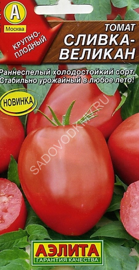 Скороспелый сорт, период от всходов до начала сбора плодов 103-110 дней. Предназначен для выращивания в открытом грунте и пленочных теплицах. Растения индетерминантные, высотой 1,2-1,5 м, с продолжительным плодоношением. Плоды крупные, массой около 300 г, уникальной грушевидной формы, сочные, мясистые, сахарные на разломе, с превосходным вкусом. Великолепно подходят для свежих салатов, соков, любой кулинарной переработки и зимних заготовок. Урожайность высокая – 9-11 кг/м2.