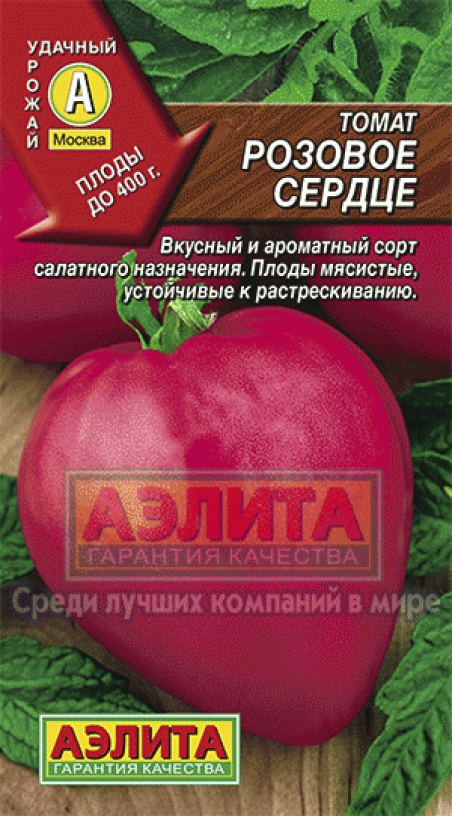 Среднеспелый (110-115 дней) сорт салатного назначения для парников и пленочных укрытий. Растение полудетерминантное, высотой 1,3-1,5 м. Плоды округлые, гладкие, розово-малиновые, массой 150-200 г, мясистые, сочные, с повышенным содержанием сахаров. Ценность сорта: устойчивость к основным заболеваниям, выравненность плодов, отличные вкусовые качества. Рекомендуется для употребления в свежем виде и приготовления соков.