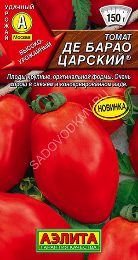 Среднеранний (100-110 дней от всходов до созревания) высокорослый урожайный гибрид для выращивания в пленочных теплицах и открытом грунте. Растение индетерминантное (с неограниченным ростом), мощное, высотой более 2 м. В кисти формируется по 8 плодов. Плоды округлой формы, одинаковые по размеру, плотные, красные, массой 80-150 г, прекрасного вкуса, для свежих салатов и консервирования. Гибрид устойчив к вертициллезу, фузариозу и кладоспориозу. Посев на рассаду — в конце февраля – начале марта. Пикировка — в фазе первого настоящего листа. Высадка рассады в теплицы — в конце апреля — начале мая. Обязательна подвязка растений через несколько дней после высадки. Формируют в один стебель, удаляя все «пасынки» и нижние листья, а также прищипывают точку роста в конце вегетации. Схема посадки: 40х60 см. Плоды собирают по мере созревания, возможен сбор кистями.