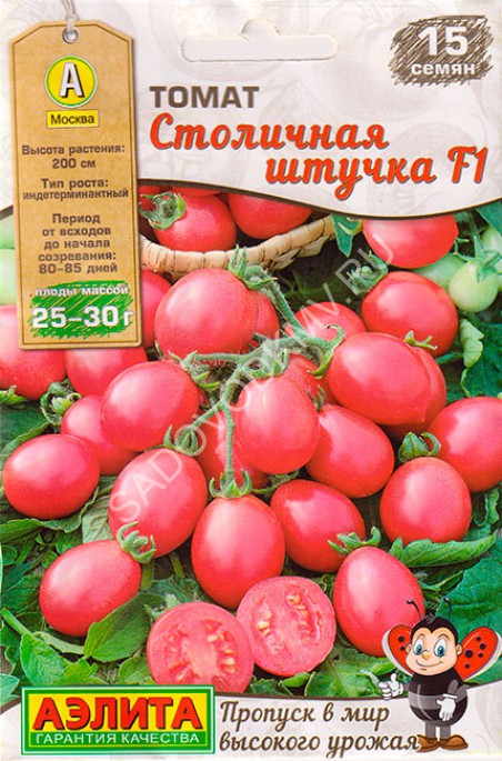 "Среднеспелый индетерминантный сорт томата (105 – 115 дней). На главном стебле формируется 4 -5 кистей, в каждой из которых до 5 крупных плодов. Плоды многокамерные, мясистые, массой 300-500 г, отличных вкусовых качеств, превосходны в салатах. Растения теневыносливы, устойчивы к заболеваниям. Сорт рекомендуется как для закрытого, так и для открытого грунта. Средняя урожайность 3-3,5 кг с растения."