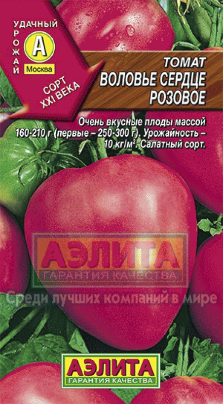 Популярный крупноплодный сорт для выращивания в открытом и защищенном грунте. Сорт среднеспелый, куст мощный, высотой 1,0 - 1,5 м. На главном стебле закладывается 4 - 5 кистей с 3 - 4 плодами весом 250 - 500 г. Плоды конусовидной формы, розово-малинового цвета, очень мясистые и вкусные, салатного назначения.
