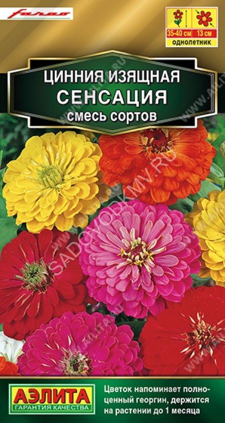 Высокорослый сорт циннии с очень крупными, махровыми соцветиями (Ø10-13 см). Кусты высотой до 90 см, мощные, хорошо облиственные, с крепкими цветоносами. Цветение раннее и продолжительное, с июня до первых заморозков. Растения неприхотливые, теплолюбивые, предпочитают солнечные места, хорошо переносят воздействие непогоды. Используются на клумбах, в рабатках и цветниках, великолепно смотрятся в групповой посадке. Отличный материал для срезки.