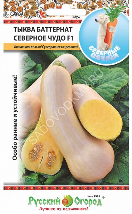 Раннеспелый (90-100 дней) сорт. Растение мощное, среднеплетистое. Плоды светло-серые, гладкие или слабо сегментированные, слегка сплюснутые, массой 3-3,5 кг. Мякоть желтая, плотная, сладкая. Средняя урожайность с растения 17-20 кг. Ценность сорта: неприхотливость выращивания, транспортабельность, пригодность к продолжительному хранению. Предупреждает ожирение и накопление в организме излишков холестерина, очень полезна для людей преклонного возраста. Рекомендуется для диетического и детского питания.