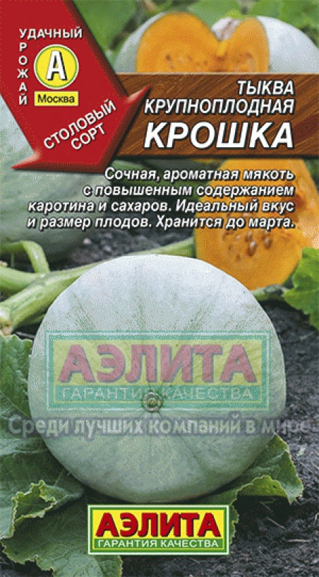Скороспелый, холодостойкий, высокоурожайный сорт столового назначения. Плоды округлые, сегментированные, очень крупные, 8-10 кг. Мякоть великолепного вкуса, ярко-оранжевая, хрустящая, очень ароматная, с повышенным содержанием каротина и сахаров. Питательные и диетические свойства высокие. Сорт обладает высокой транспортабельностью, прекрасной лежкостью и устойчивостью к болезням.