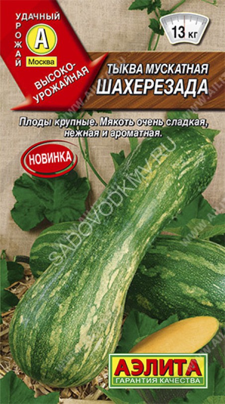 Новый, раннеспелый сорт, период от всходов до технической спелости 85-95 дней. Урожайность высокая, 7-8 кг с одного растения. Плоды красивой формы, выравненные, массой 1,3-1,8 кг. Мякоть толстая, сладкая, сочная, со вкусом и ароматом каштана. Отлично подходит для приготовления супов, каш, оладьев. Плоды хорошо хранятся длительное время и транспортируются.