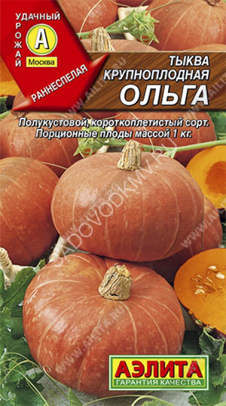 Среднеспелый (от всходов до созревания 110-120 дней) гибрид с порционными плодами. Растение плетистое. Плоды плоскоокруглые, слегка ребристые, массой 2,5-3,5 кг, серо-зеленого цвета, с яркой желто-оранжевой, плотной, ароматной мякотью, по вкусу напоминающей морковь, с повышенным содержанием бета-каротина. Средняя урожайность с одного растения 18-20 кг. Ценность гибрида: высокие потребительские и вкусовые качества. Рекомендуется для употребления в свежем виде, домашней кулинарии, переработки на соки, для диетического и лечебного питания.