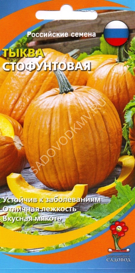 Среднеспелый (105-115 дней от всходов до созревания) урожайный сорт крупноплодной тыквы. Растение длинноплетистое, ветвистое. Плоды удлинённо-овальные, эллиптические, в поперечнике округлые, длиной 50-70 см, диаметром 20-30 см, массой 6-9 (до 15) кг, гладкие, бежевые, при вызревании розовеют и покрываются выпуклыми штрихами. Мякоть оранжевая, сладкая, нежная, очень вкусная. Урожайность 3,9-5,1 кг/м2. При сборе с сохранением плодоножки на плоде лежит 90 дней. Предназначен для употребления в свежем виде, домашней кулинарии, переработки на пюре и соки, для сушки и хранения. Посев на рассаду — в апреле. Высадка рассады в грунт — в мае-июне. Посев непосредственно в грунт — в конце мая-июне. Глубина заделки семян 3-4 см. Схема посадки: 100х150 см.