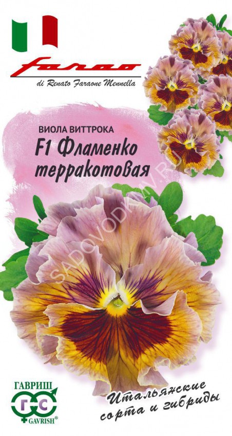 Восхитительная серия крупноцветковой гибридной виолы благодаря необычным оттенкам станет центральным украшением балкона или любого садового пространства. Цветет обильно и продолжительно, с мая по сентябрь. Цветки сочетают красивый рисунок рубинового и желтого тона, с ярким глазком в центре. Диаметр цветов 6 см. Растение влаголюбивое, холодостойкое, хорошо растет на солнце и в полутени. Для получения растений, цветущих в год посева, семена высевают на рассаду в феврале-марте. Всходы появляются через 5-7 дней. В открытый грунт рассаду высаживают в конце апреля-начале мая на расстоянии 20 см. Хорошо переносит пересадку в цветущем состоянии. При посеве в открытый грунт в июне-июле, цветение наступает во второй год. Используют для посадки на клумбы, в рабатки, балконные ящики и садовые вазы.