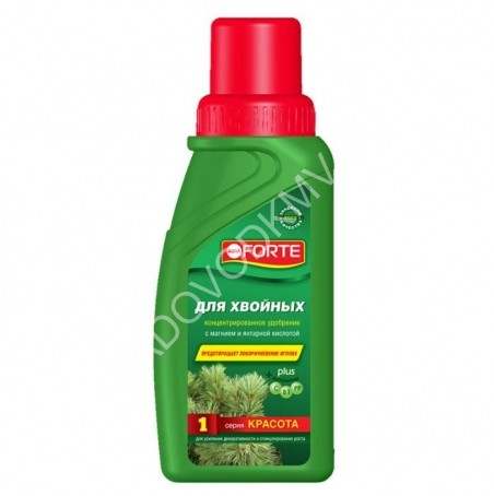 Гарантирует правильное, гармоничное развитие растений; повышает качество, насыщенность, густоту окраски хвои; укрепляет корневую систему.